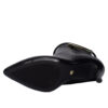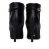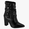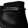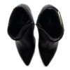 Confeccionada em material sintético resistente, possui forro têxtil macio, palmilha em espuma e solado em borracha, garantindo conforto e estabilidade durante o uso. O salto fino de 9,5 cm e o bico fino alongam a silhueta, enquanto o detalhe dourado na parte superior do cano adiciona um toque de estilo e personalidade. O fechamento lateral em zíper facilita o calce e proporciona ajuste perfeito.