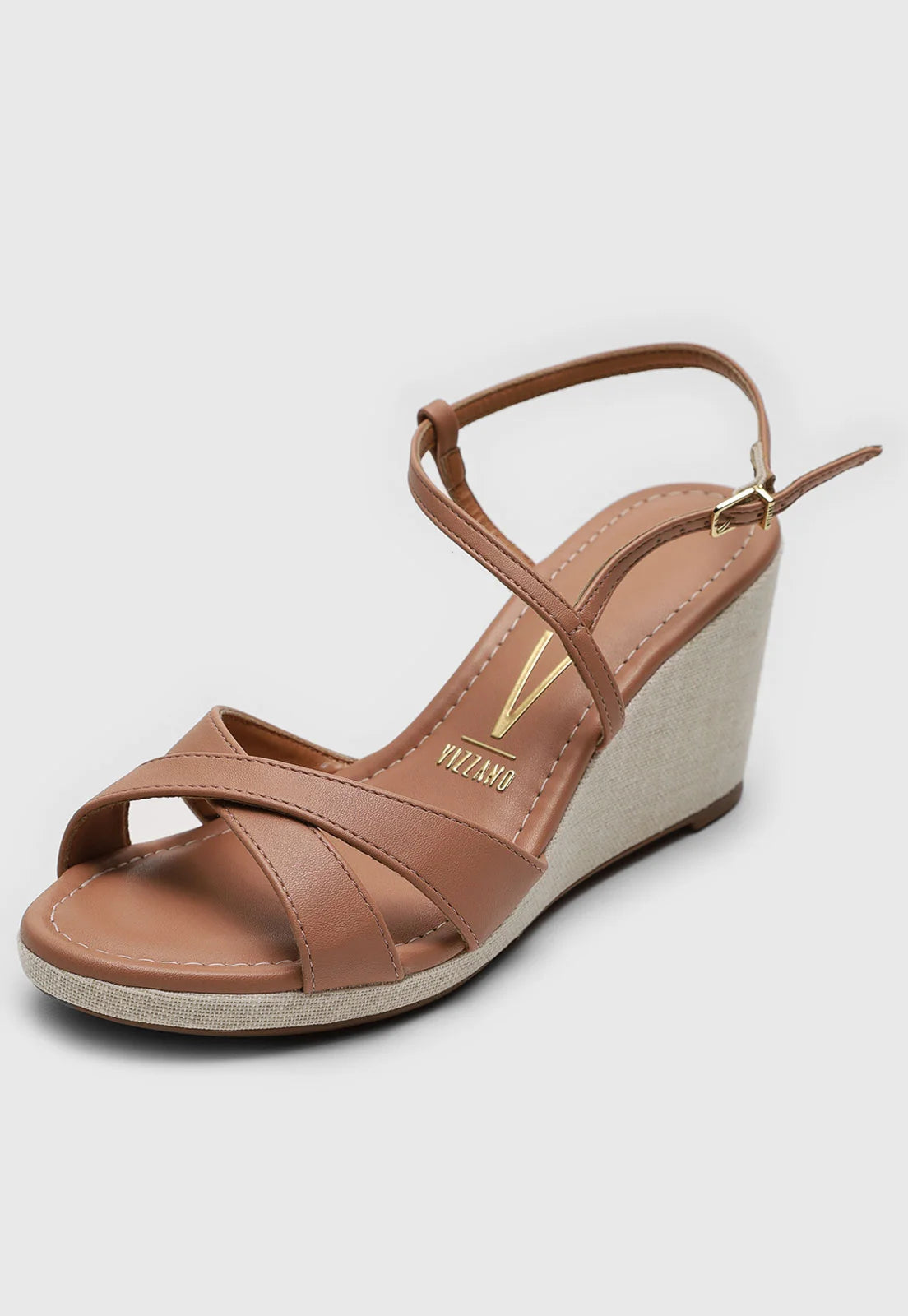 Sandália Anabela Vizzano Tira Transpassada Nude